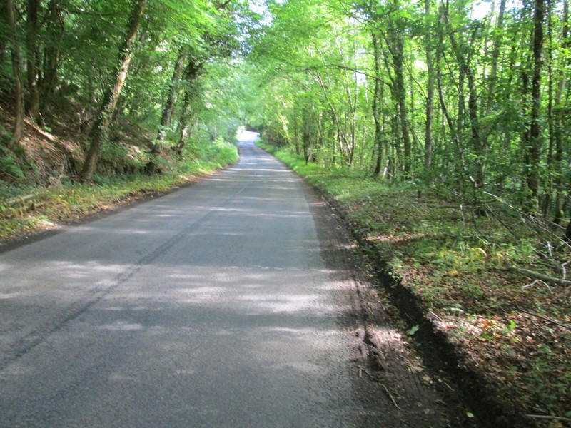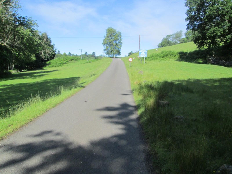 Leaving Dalvreck the minor road heads through woods.....