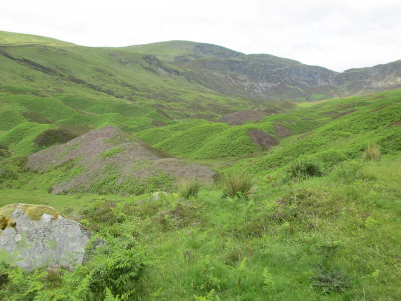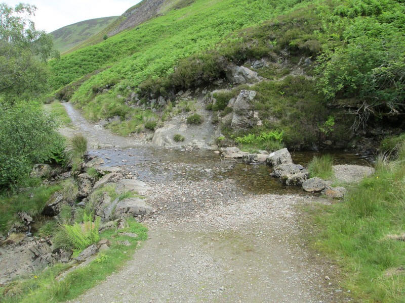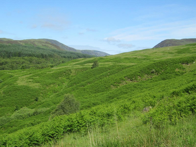 At the head of the glen the hill on the left is Ben Chonzie whilst Auchnafree Hill is on the right.