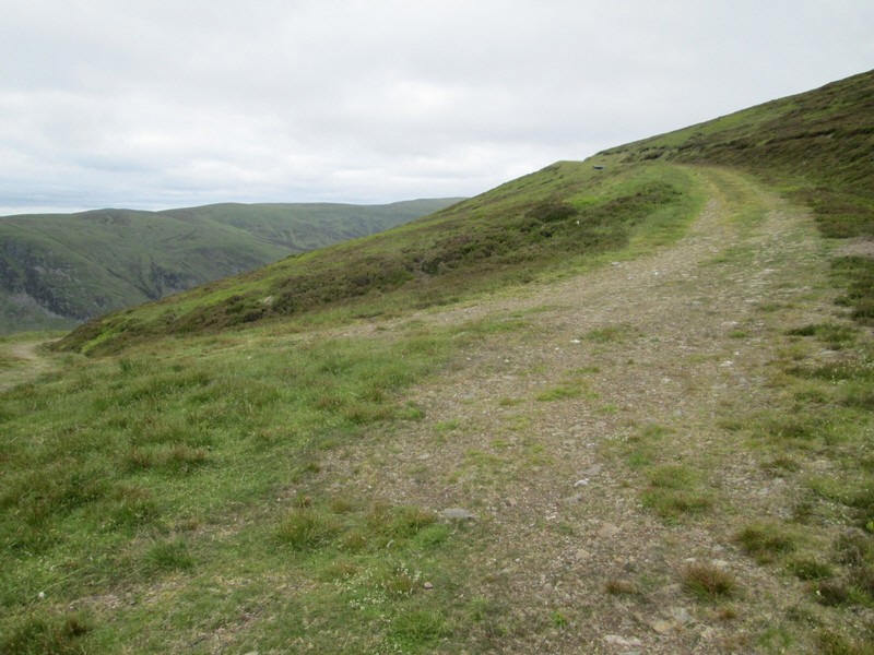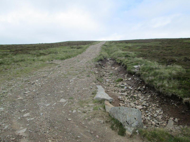 Somewhere about NN 808 300 the OS 1:25000 map shows the track coming to an end but in actual fact it bends through about 90 degrees and heads across the flat top of the hill.