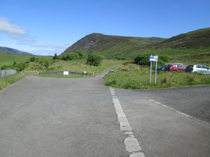 There's a car park at the end of the road whilst the route to the hills goes off to the right through the barriers.....