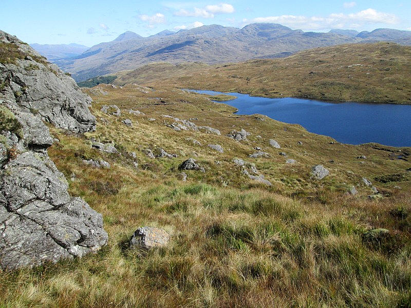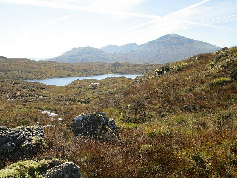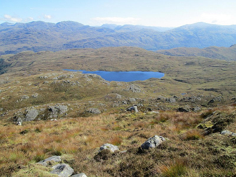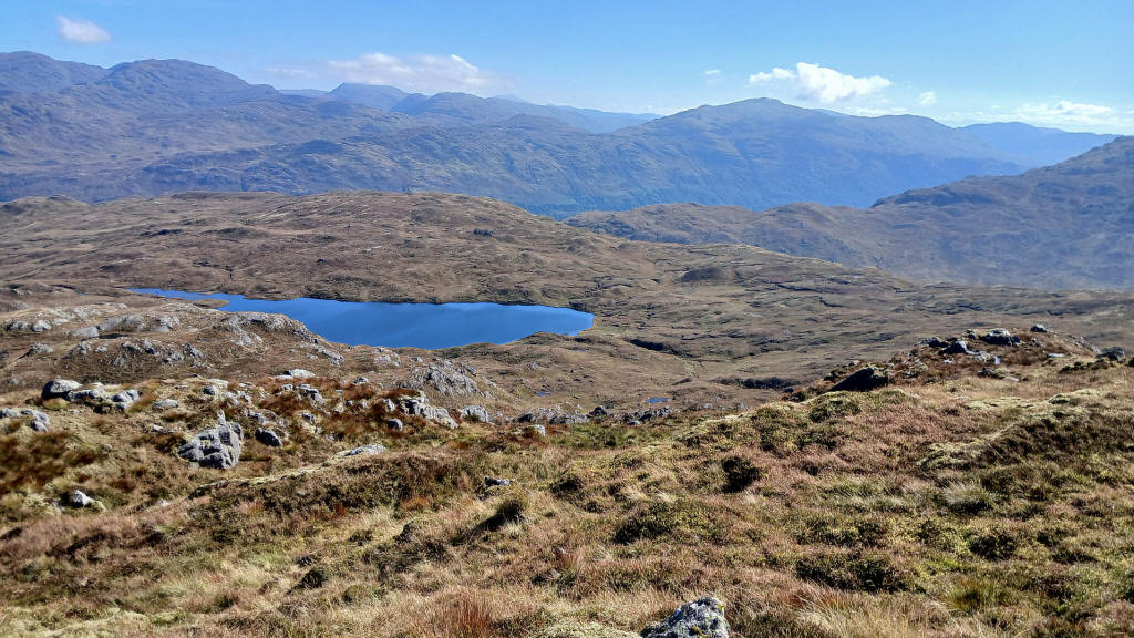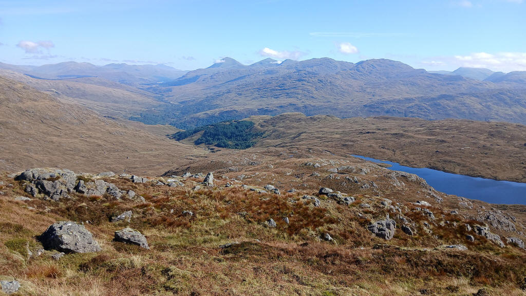 Appearing to the south east is Lochan Beinn Damhain with the Munro Ben Vorlich beyond.