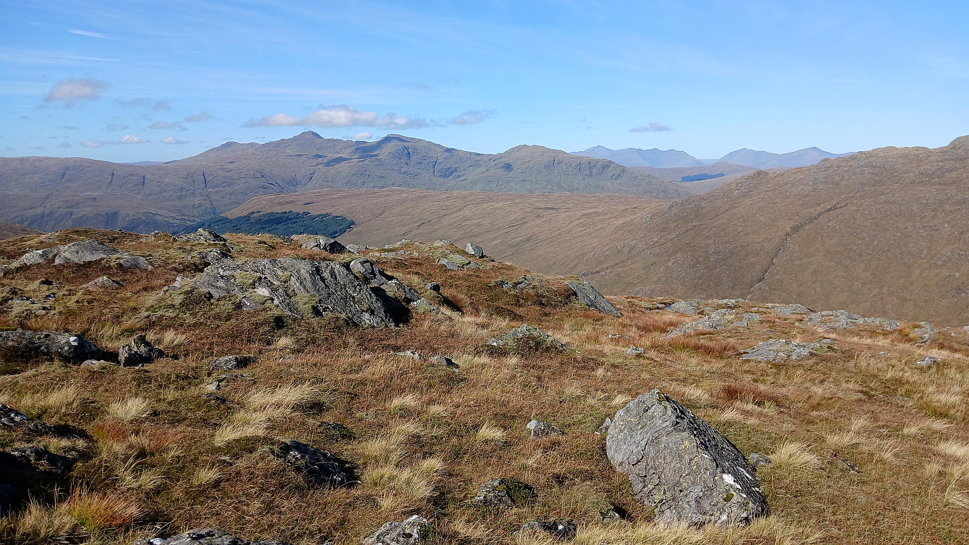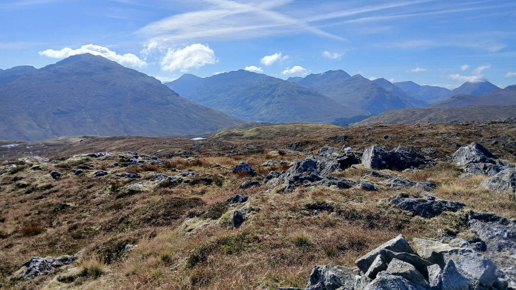 The summit dome of Beinn Damhain is full of rock outcrops which makes a change from the boggy grass lower down.