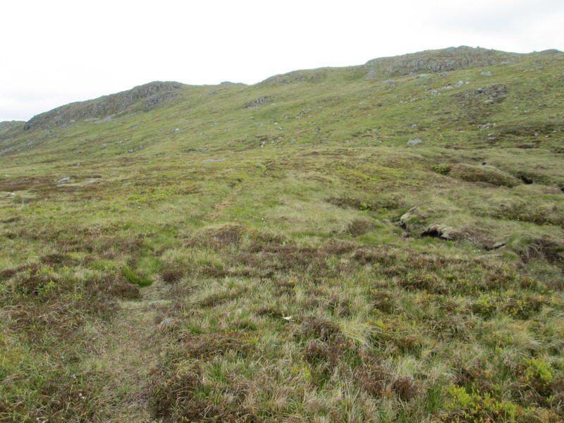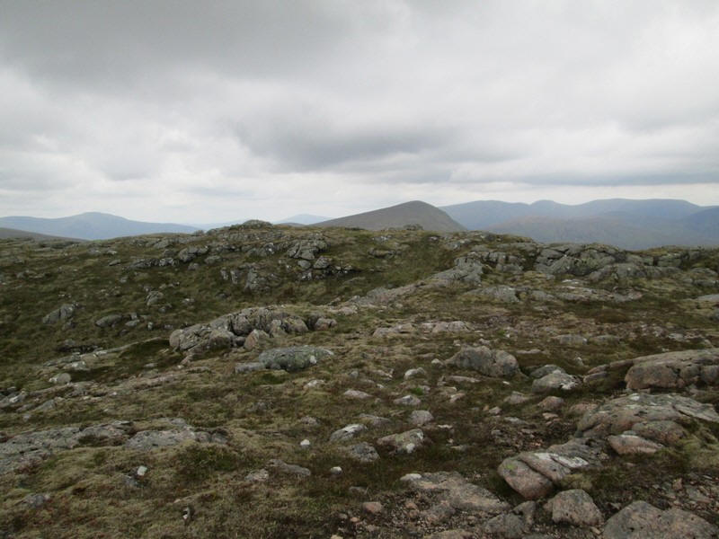 Ahead is the 807m summit of Beinn Pharlagain but the highest point isn't there but about a kilometre further north.