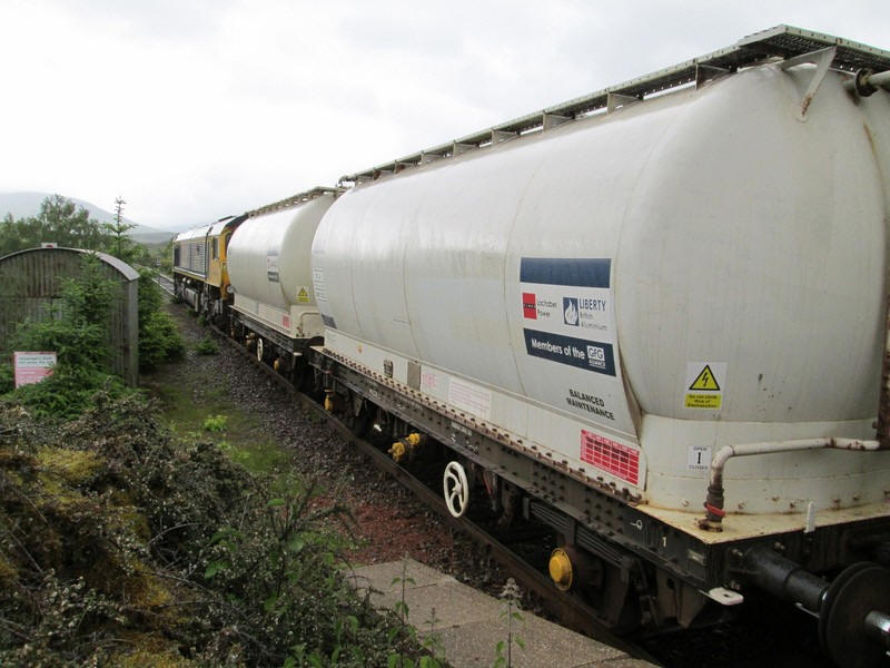 Whilst waiting for my train to Bridge of Orchy the Blythe to Fort William alumina train arrived bringing alumina to the smelter at Fort William.
