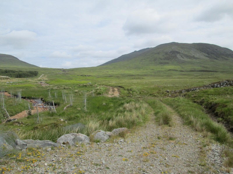 The track heads north with Beinn Pharlagain on the right.