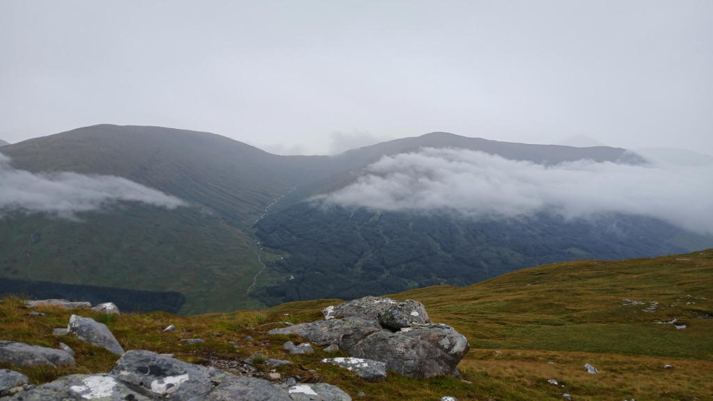 At about NN285 411, near the cairn, a track leads off up the hill. It's easy to miss as it trails into the West Highland Way at an oblique angle. I missed the junction and had to walk back to find it.