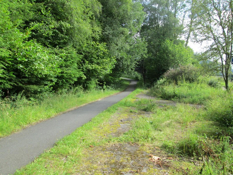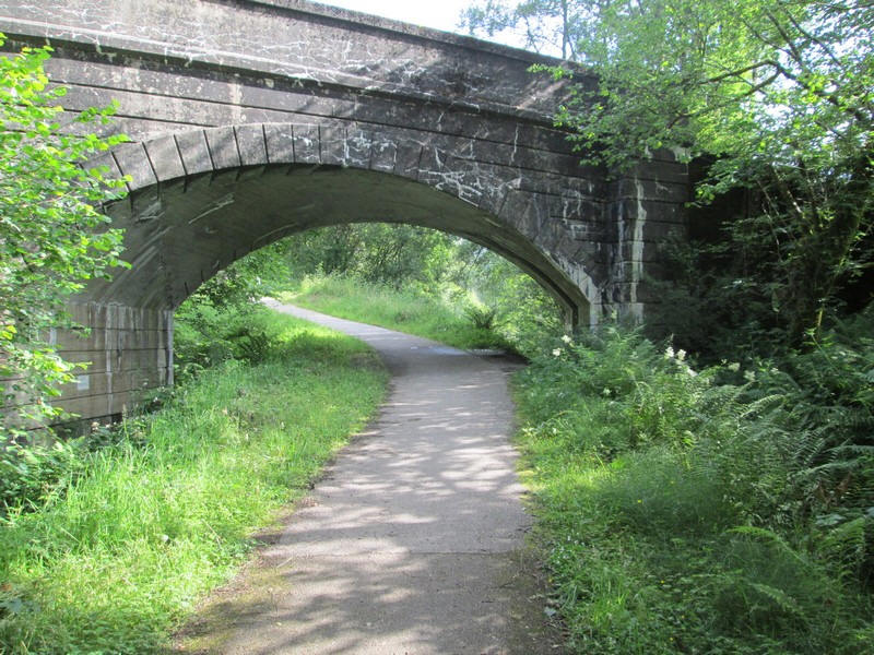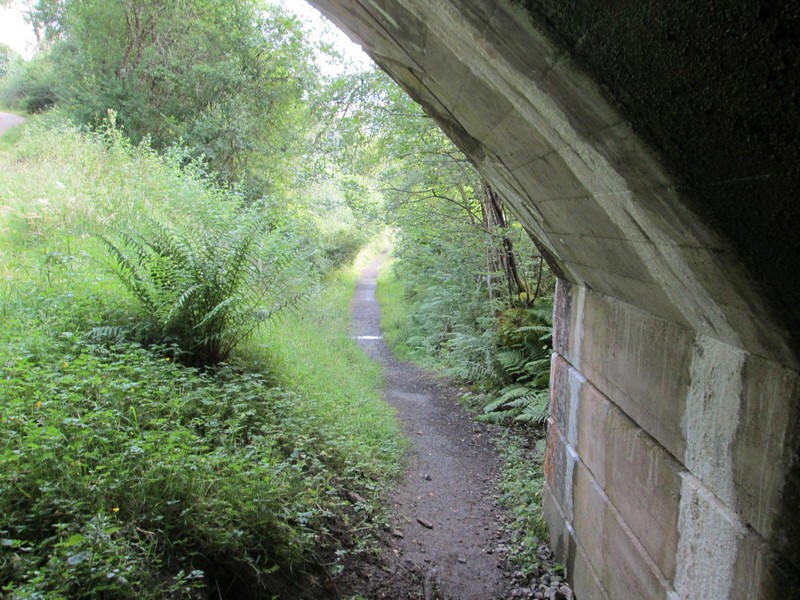 The old trackbed to Comrie and Crieff goes straight ahead under the bridge as can be seen here but the cycle track heads steeply uphill.