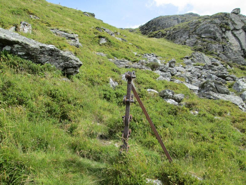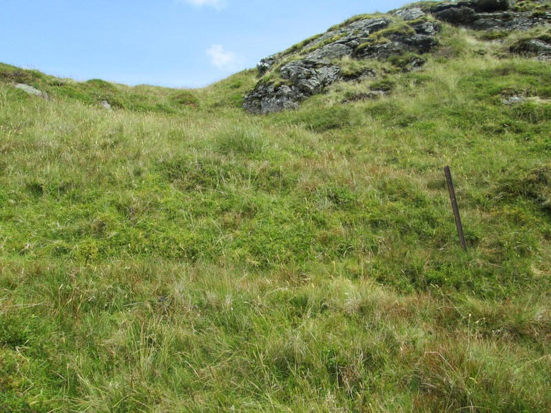 I'd entered a few waymarks into my GPS to make sure I found the line of old fence posts on my way down as I think it would be easy to miss the safe descent route. One of these was at NN 54384 25090.