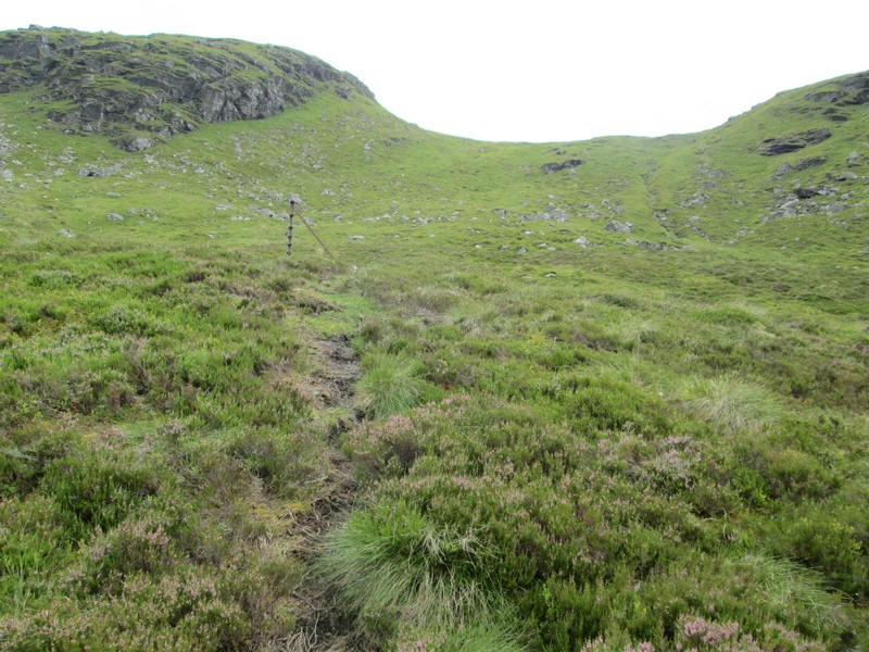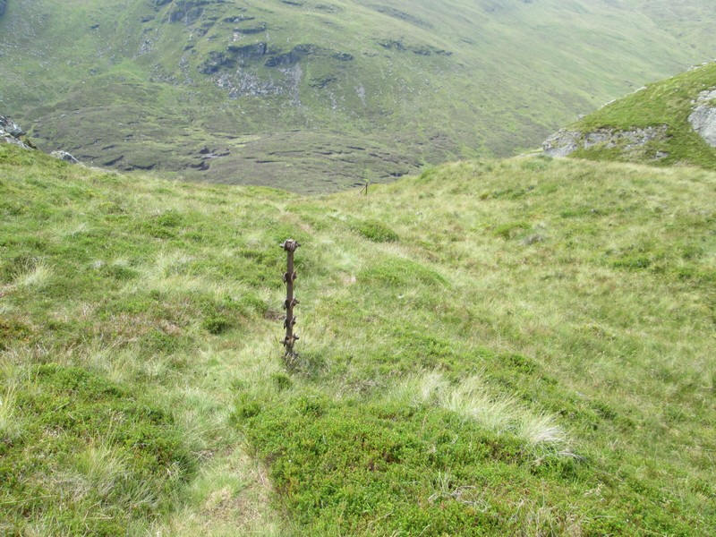 There was a faint path across the bealach again following the line of decaying fence posts.