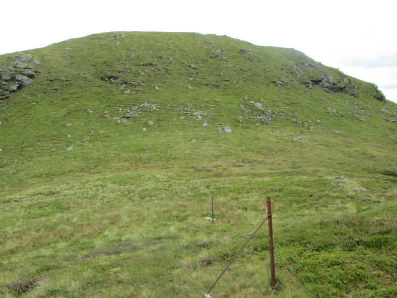 It's a final gentle climb to the summit. The fence shown on the OS maps over these hills no longer exists except as a few posts.