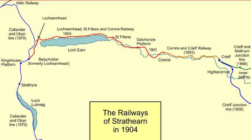 The map below shows the railways of this area. The main railway was the Callander and Oban which opened in 1870 and closed in 1965 as part of the Beeching cuts but also because of landslides in Glen Ogle.
