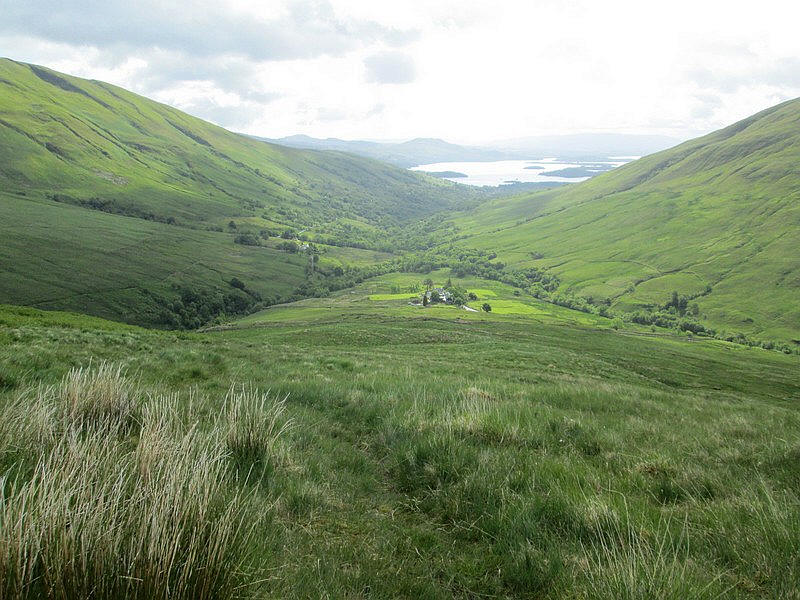 There's a very wet and intermittent track down the glen although it is easy to lose in the boggy sections. Eventually it reaches a more solid track which leads down to the bridge on the road up from Luss.