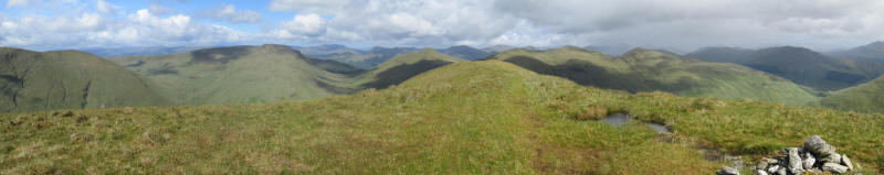 A panoramic view from the summit looking from the south west to the north west. Click on the photo for a larger image.