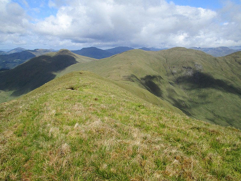 Onwards from Ben Eich's summit towards Beinn Lochain and Doune Hill the ridge drops down.....