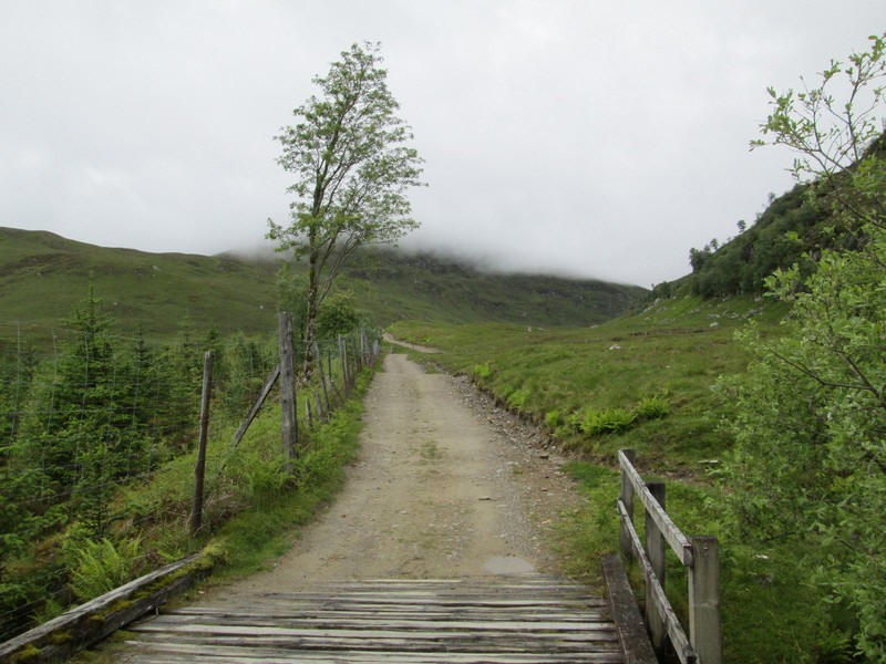 The estate track continues up this dramatic glen...