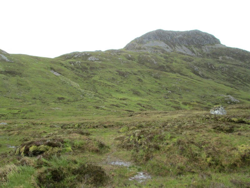 Eventually I reach the summit of the track at a fairly wet watershed. The next stage of the walk is to get up onto the bealach between Cruach Innse (out of sight to the left) and Sgurr Innse.