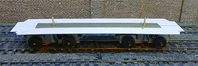 Finally the light consoles have been made from thick card glued to the brass foundations. Small plasticard discs have been added to represent the headlights.