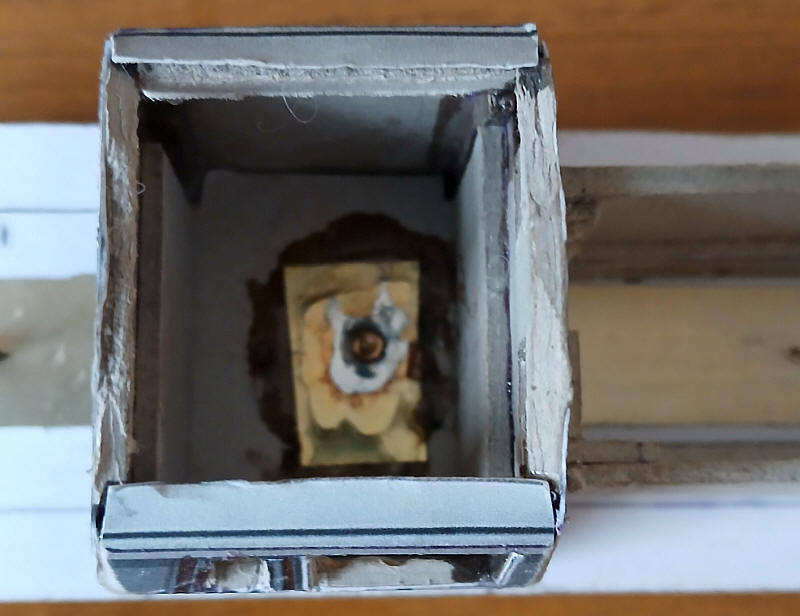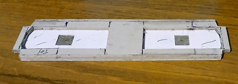 Openings have been cut where the axle boxes will be whilst 4 holes have also been drilled through the card.