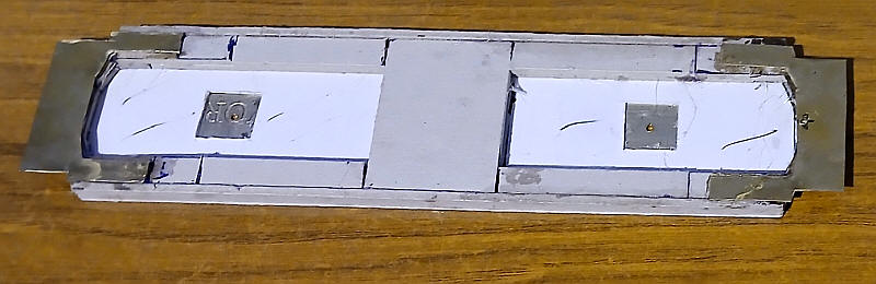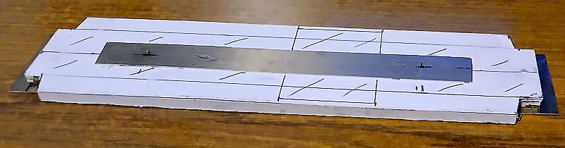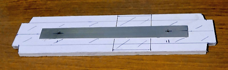 ....the card was glued underneath the nickel silver strip. By chance this gives exactly the correct height (25mm) above the rail head.