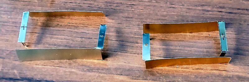 These were cut from brass sheet (about 20mm by 5mm) with a small tab on one side. The tab was bent at right angles and then glued to the end of the card bufferbeams.