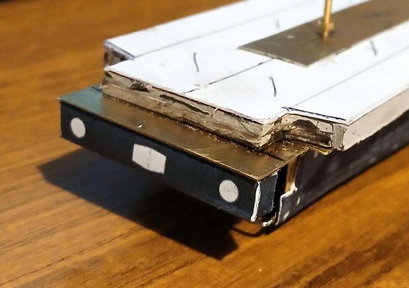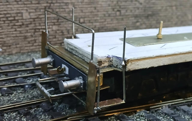 The buffer beam is then glued to the underside of the brass shunters' platform.