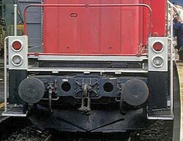Obviously this was not a strong joint so I joined the lower edges of the light brackets along the bottom edges with a length of nickel silver wire soldered to the rear of the brass. This is unprotoypical but necessary for strength. I then added another length of nickel silver wire a couple of millimetres above the bufferbeam - this is present on the real locomotive. A U shaped length of wire, which forms the safety rail for the shunters was also soldered on to the rear of the light brackets. And yes I realise that the brass sheet on the right is not straight of the same as the one one the left. The cosmetic lamp bracket will hide this when I add it.