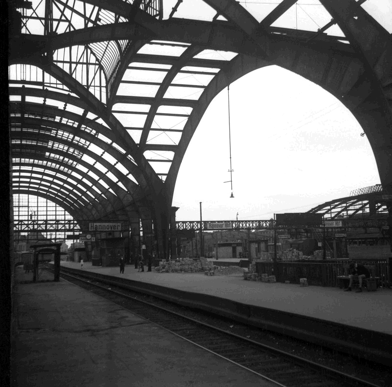 The damaged roof of Hannover Hbf, later demolished, in August 1946.