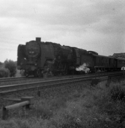 When we reached Kassel in the early hours, there was a long delay and the Americans in our compartment cursed and swore; ‘These God dammed Kraut railroads’ and such like comments. Finally, we learned that KBS 520 - our line to Marburg and Winterberg - was blocked, so they said, by an explosion on an oil train. So back we went to Eichenberg. We arrived there at 06.30. The top-rank Berlin-Frankfurt Army train (the Americans called it ‘The Berliner’) was there behind a BR 50. We had 01.1095 of Bw Kassel, the first DRG loco I had seen in April 1945. D176 (Wesermünde—Friedrichshafen) came in behind 01.078. To add to the over-crowded scene, a French Army leave train, direct from Helmstedt and Berlin came in behind 39.239 of Bw Bebra; it was made up of the odd-looking French curved body stock with oval windows.