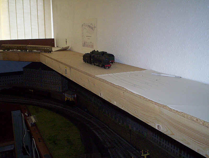 Finally, I came up with a compromise. I'd double deck the layout in the small spare room where Halifax is. There wouldn't be any station so the basic concept would reflect this. On one side of the room there would be a series of sidings for holding carriages - either 3 or 4 car rakes - and some freight sorting sidings. On the other side of the room there would be a two road fiddle yard hidden behind retaining walls as well as a small locomotive depot. Various sidings will be squeezed into the corners and the emphasis will be on operation. The baseboards will be narrow; generally no wider than 12", whilst the scenery will be yet more retaining walls and industrial back scenes.
