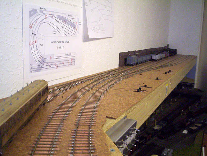 My initial thoughts were to simply use the new layout as an "overflow" for Halifax Midland but I've had considerable reservations about doing this since one of my doctors nodded his head when I mentioned that working on the higher baseboards of the layout might have contributed to my injury. So in one of those cathartic moments, I decided to demolish the top layout and consign it all to the local tip. Thus ended six month's work but, on the other hand, I can now see Halifax Midland again properly and ideas are forming on how to make it a better layout.