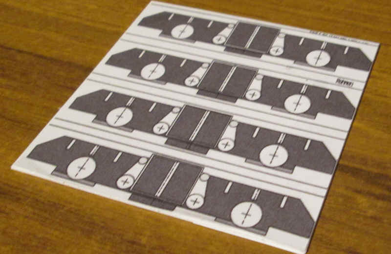 The paper print outs are fastened to the plasticard with solvent and then carefully cut out. A coarse file was used to removed the paper from the plastic and then the various parts were secured in the correct position.