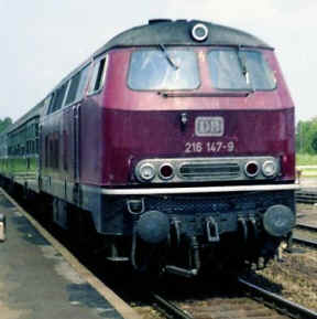 The various German mainline diesels of the V160 family are perhaps the archetypal Deutsche Bundesbahn diesel type. Utilising the same basic bodyshape there have been several variants of differing power and having different methods of train heating. They could, and still can, be found all over the country working everything from local passenger trains and freights through to top rank expresses.