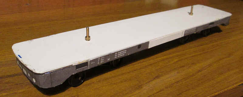 By a fortunate coincidence the nickel silver spine of the chassis is at precisely the correct height to allow this piece of plastic to sit on top of it and maintain the scale height above the railhead for the white stripe