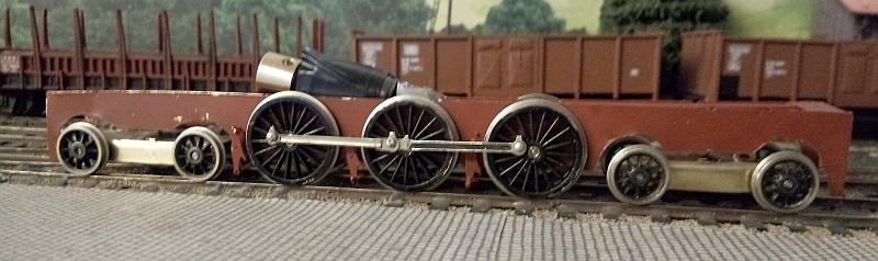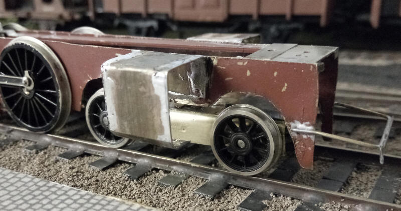 I've also replaced the wheels on the front bogie with slightly smaller ones (and also much deeper flanges) as the bogie kept derailing on the sharp curves. Clearances behind the cylinders are very tight so this is hardly surprising. The new arrangement has eliminated that problem.