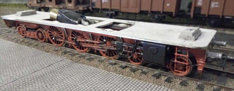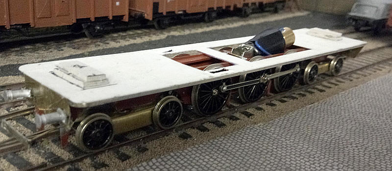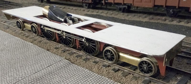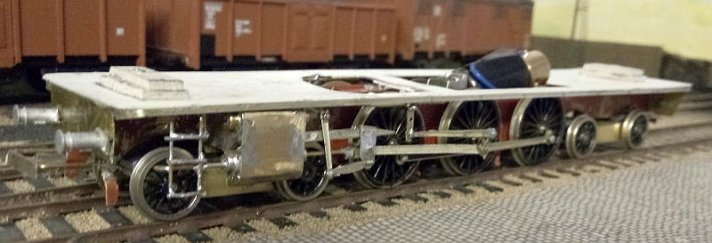 The footplate is placed in position- a little packing was necessary at the rear to get it to sit absolutely the same height at the front and rear. Obviously, at the moment the footplate assembly is not very strong but will become more rigid as construction proceeds.