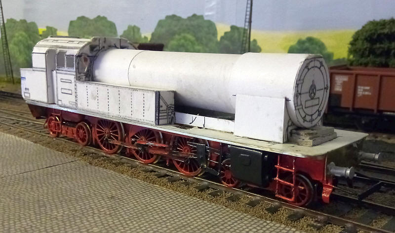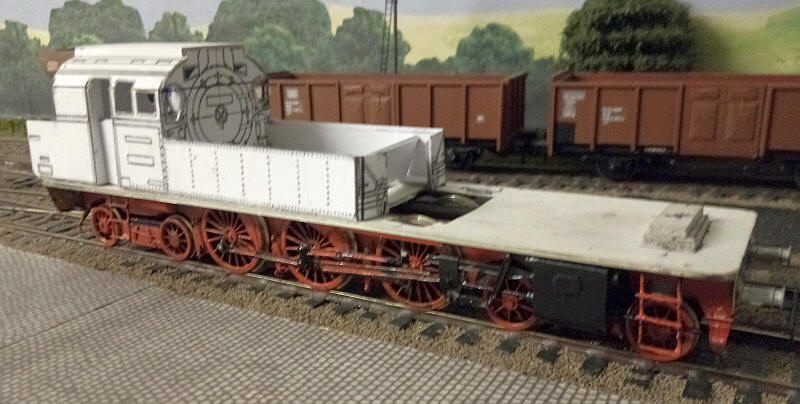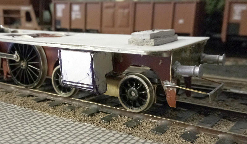 Before constructing the cylinders in metal I decided to construct a mock-up in cardboard to check clearances for the bogie.