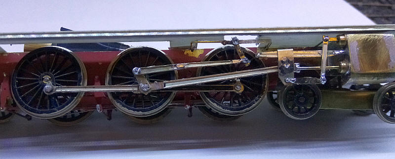 The valve gear in its raw and rather crude state is made from a mixture of modified Alan Gibson LMS S Scale etchings and various pieces of wire and small diameter top hat bearings. Once painted and weathered all will blend together.