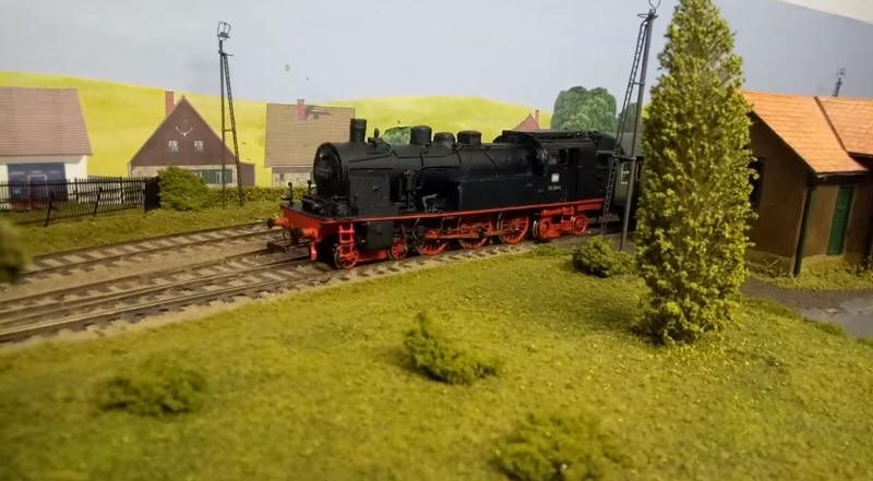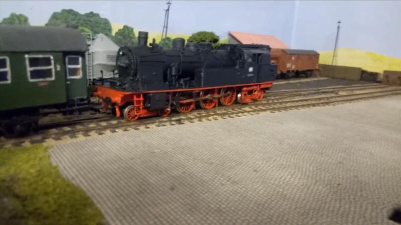 Click on the photo below to see a short video of the model in action. The train runs off the Niederwangen layout and onto the British Pendle Midland to access the fiddle yard.