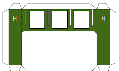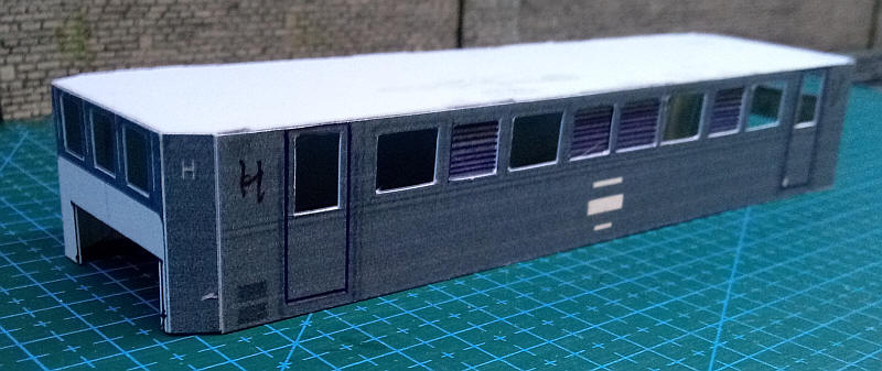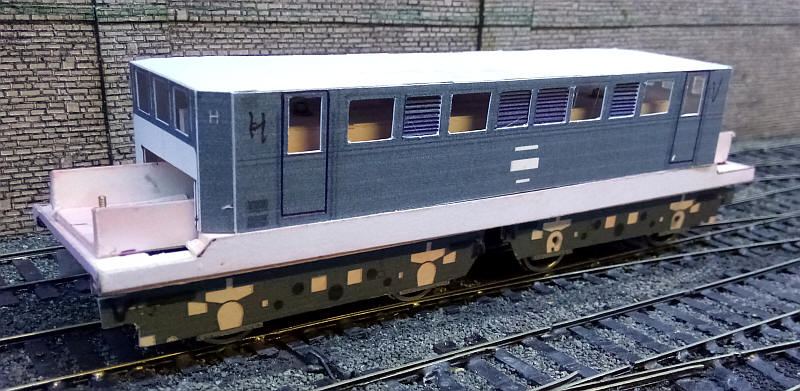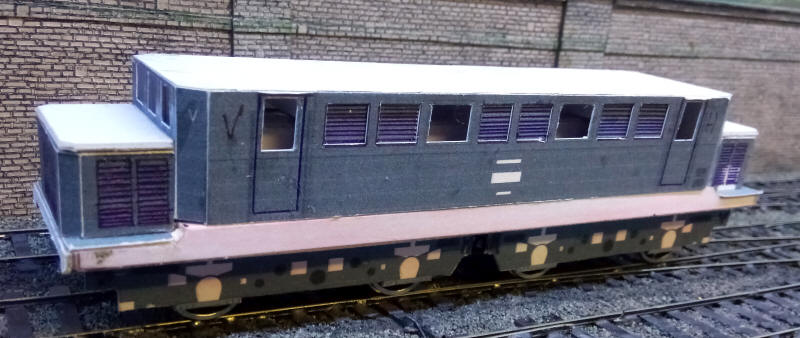 Further details such as the axleboxes, springs, sandboxes, the raised central area on the roof and window light shields are all from card and from the parts in the pdf kit.