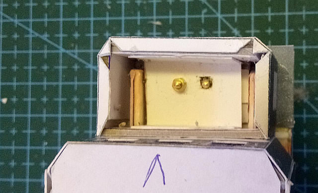 The bufferbeams are made from a fold-up cuboid which I strengthened by gluing several layers of mounting card inside to make a solid block.