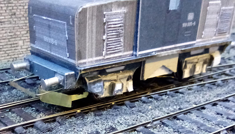 A distinctive feature of the locos is the permamently fitted snowploughs under the buffer beam. I used the printouts for these as a template for ones made out of brass as I felt that strength was necessary for these fragile parts.