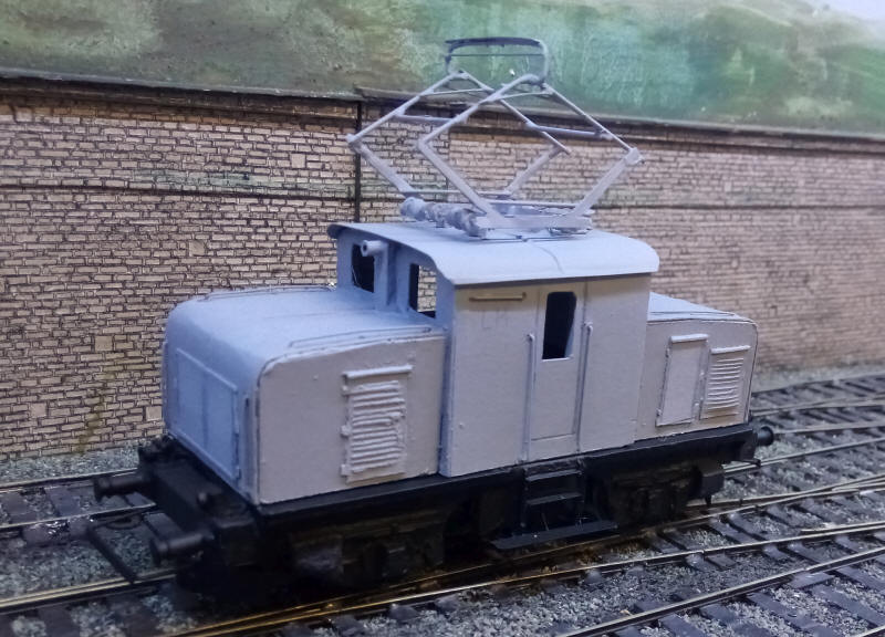 I've placed the roof and pantograph in place to give an idea of what the finished loco will look like.