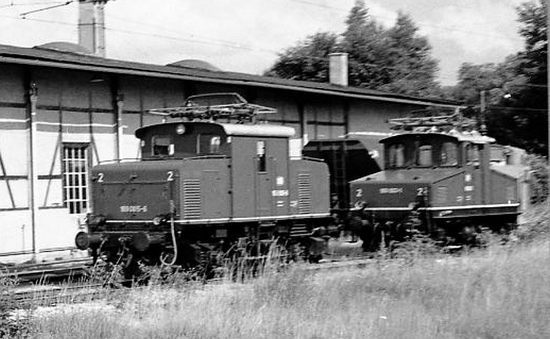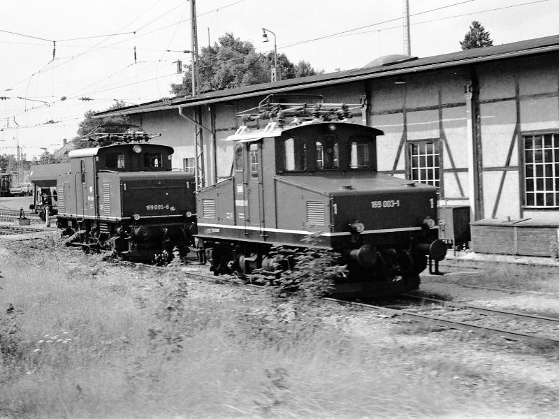 These two photos show 169.003 (one of the older 169s) and 169.005 at Murnau shed. The locos were used on freight and passenger trains on the branch to Oberamergau until the early 1980s.