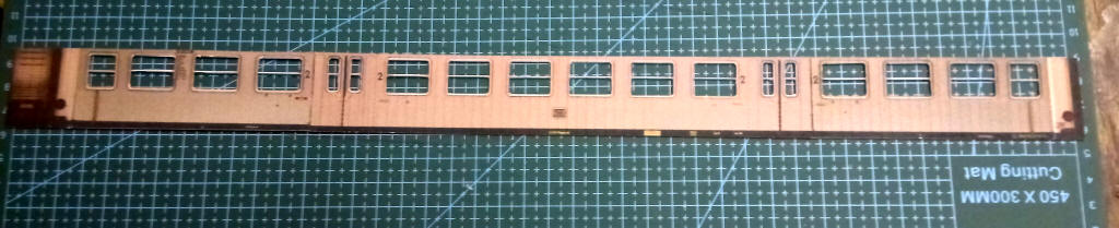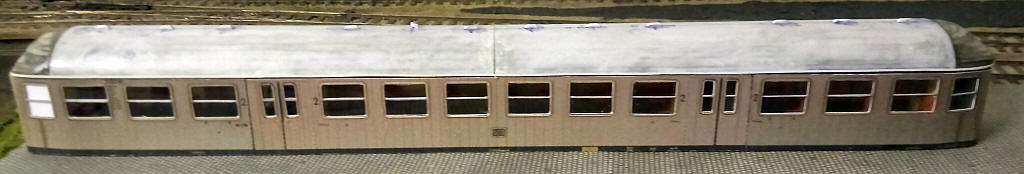 On many German branch lines the Silberlinge were run in push-pull format to avoid having to run the locomotive around the train at the terminus. Therefore I need a Steuerwagen (in British terms a control car or driving trailer). These have just over a third of the vehicle given over to a cab and the conductor/ luggage van area. This results in the centre passenger section being reduced from six bays to five.