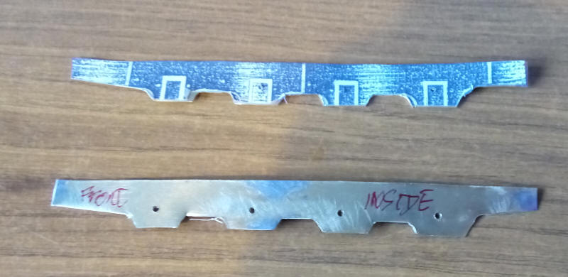 The frames have been strengthened using the same method I adopted for my German V60 diesel shunter. Lengths of double sided copper clad sleeper strip have been soldered along the top edge of the frames.