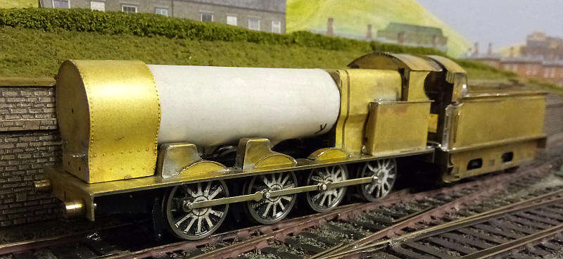Construction is now complete and the model is ready fpr painting. There are more details I could add but there is always the risk that these detract from the basic simplicity of the model. I've added the guard irons to the front of the chassis and some pipework from the small box on the side of the boiler as well as giving the washout plugs a backing of filler inside the firebox. The tender now has its springs and axlebox castings. I believe these may be intended for Midland Railway tenders but they are very close to those on the LNWR tenders so will have to do.