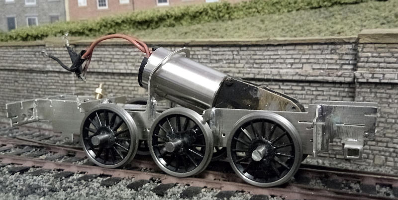 Originally I intended to use an RG4 Portescap motor but shortly after this photo was taken I replaced it with a Mashima motor and Markits gearbox. The wheels are Alan Gibson mounted on 1/8th inch diameter rod cut to length.