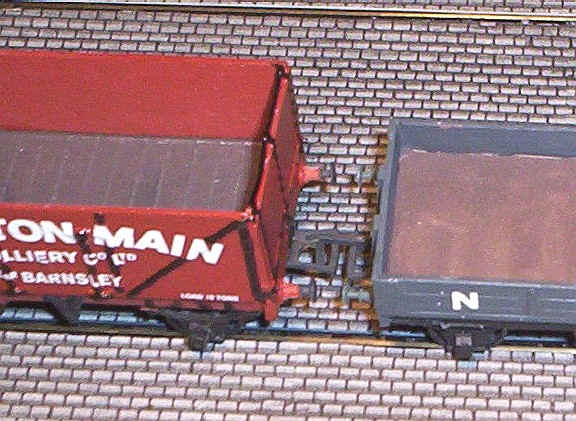 Thus I started to fit Kadee couplings to my slowly growing stock of models. As detailed elsewhere on this website I soon found I had problems, largely I suspect because of the slop in the axle ends and the short length of the wagons. Frequently the couplings didn't quite couple with the couplings not engaging properly. Also I found that the short wagons often bridged the magnetic ramps and uncoupled at both ends.