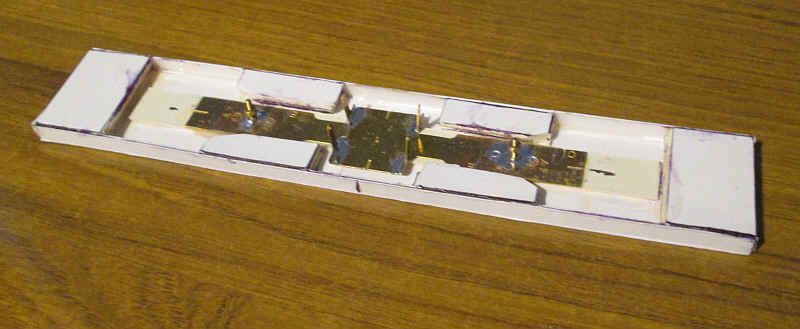 Cut a base of thick mounting card 196mm by 44 mm to fit snuggly between the ends of the coach.