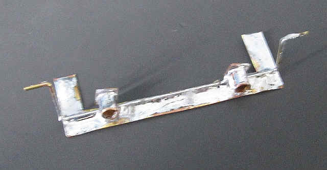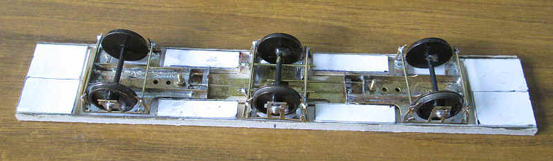 This photo shows the underframe viewed from the top. The faint mark down the centre shows where the two halves of the widened tabs are joined.